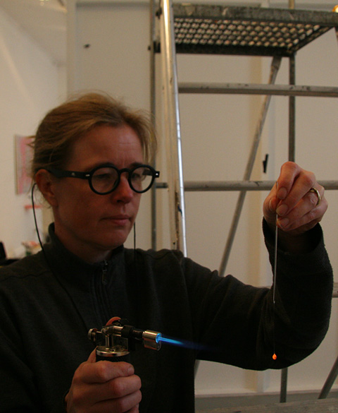 I was nervous about making drops, because it is the speed of my responsiveness that controls the length of the threads that suspends the drop in mid air. Yesterday night I was too tired and burned of the thread and they ended up burning the floor (the glass is about 1100 degrees centigrade when it melts into a drop).