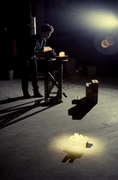 The performance speaks of how we rely on what seems to be safe factors in our life, such as our home. The explosions represent how "solid" things in our life can suddenly fall apart, as when someone dies or when losing a job.