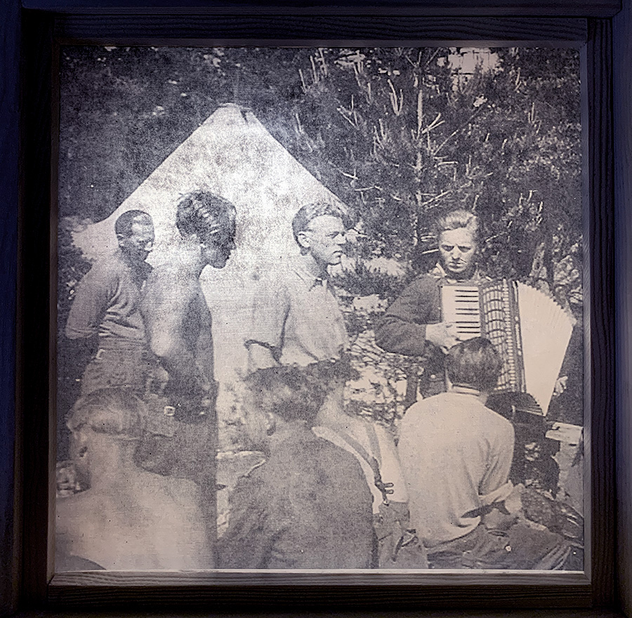 The background to the project is the so-called Swedish extradition of Baltic soldiers to the Soviet Union after World War II. About 150 Latvian soldiers in the German army fled at the end of the war to Gotland, where they were held at a detention camp called Lager Lingen, together with a few hundred soldiers from Germany. 21 of these Latvian soldiers were extradited in January of 1946. In 1994 the Swedish government made an official apology. The work is concentrated on the summer of 1945 where about 600 soldiers were held, in what looks like an idyllic summer camp, in southern Gotland. The relief and happiness that the war is finally over are apparent in their faces. The Swedish soldiers and the local community were far from the Swedish government politics but got to know and appreciate these refugees of war. Ability to preserve humanity in the horrors of war is in these captivating archive photographs. The wooden crate installation is made from wartime materials: wood and flat glass collected from renovations of World War II military barracks.