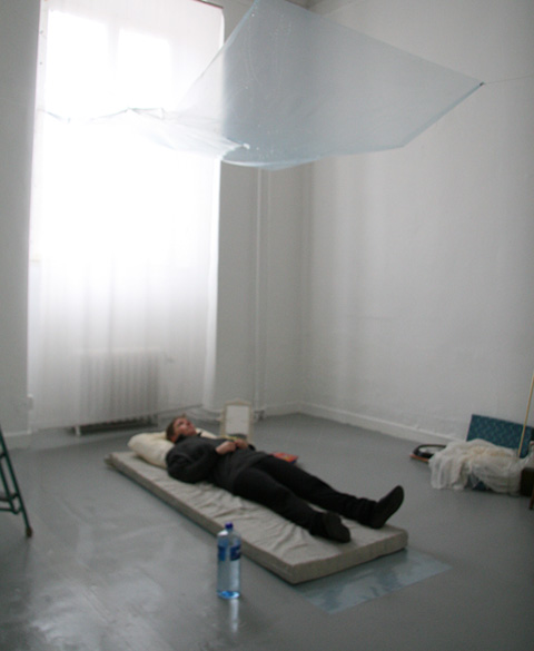Day two. Wake up at 4.30 and feel like I have the flue. I was prepared and start reading and my mind is on internal speed. I can't walk and I wonder how I will be able to meet the press at 10, but as I was hoping my creativity is bursting. I have 2 good ideas I need to attemps today. I call my mother to ask her to be standby helper for friday when I have to install the art work. I get up at 9.30 and take a shower. The hotwater is off, I faulty main pipe I learn in the newspaper at night, and the cold shower (I have to wash my hair) wakes me up. I feel great!