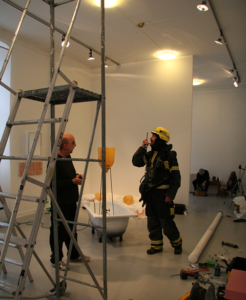With the endeavor to record my presence while installing the proposed artwork, I took residence in the Museum during the 4 final days before the opening reception. While installing I abstained from my everyday needs or duties such as eating, or taking care of family life and performed a 4 day water fast. During a fast the metabolism changes and during times one can expect a fatigue, thus slowing the work.