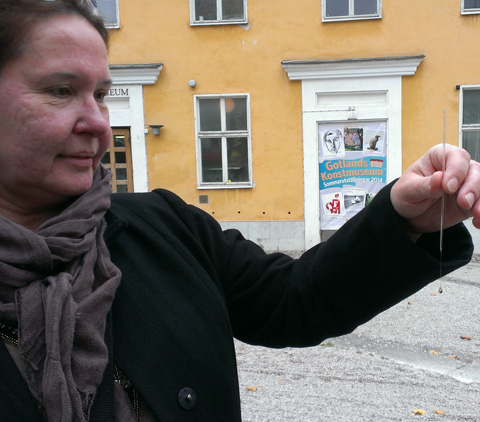 Jeanette Path, artist from Visby, stops by to talk about her travel to Riga in search of her father's birthplace. I made her a small drop for safekeeping.